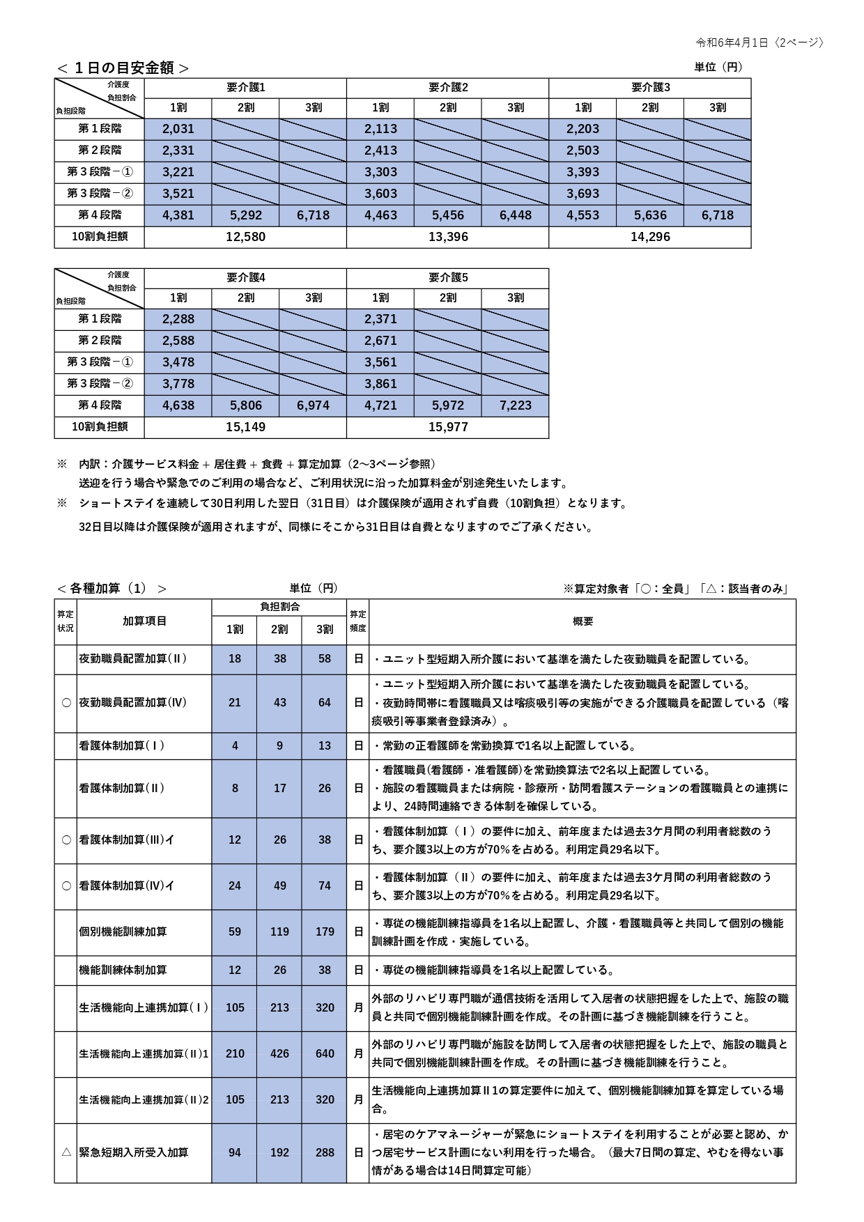 料金表《ショートステイ》