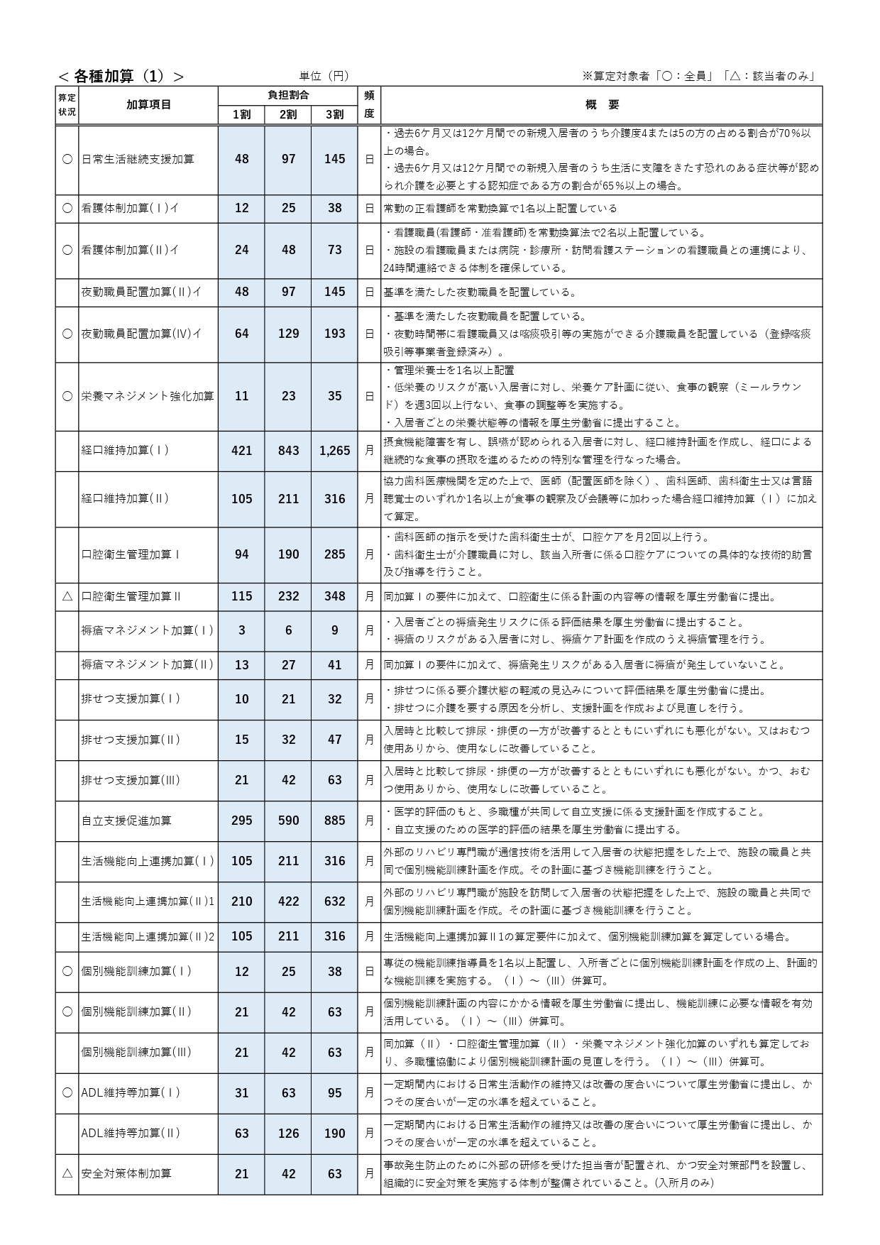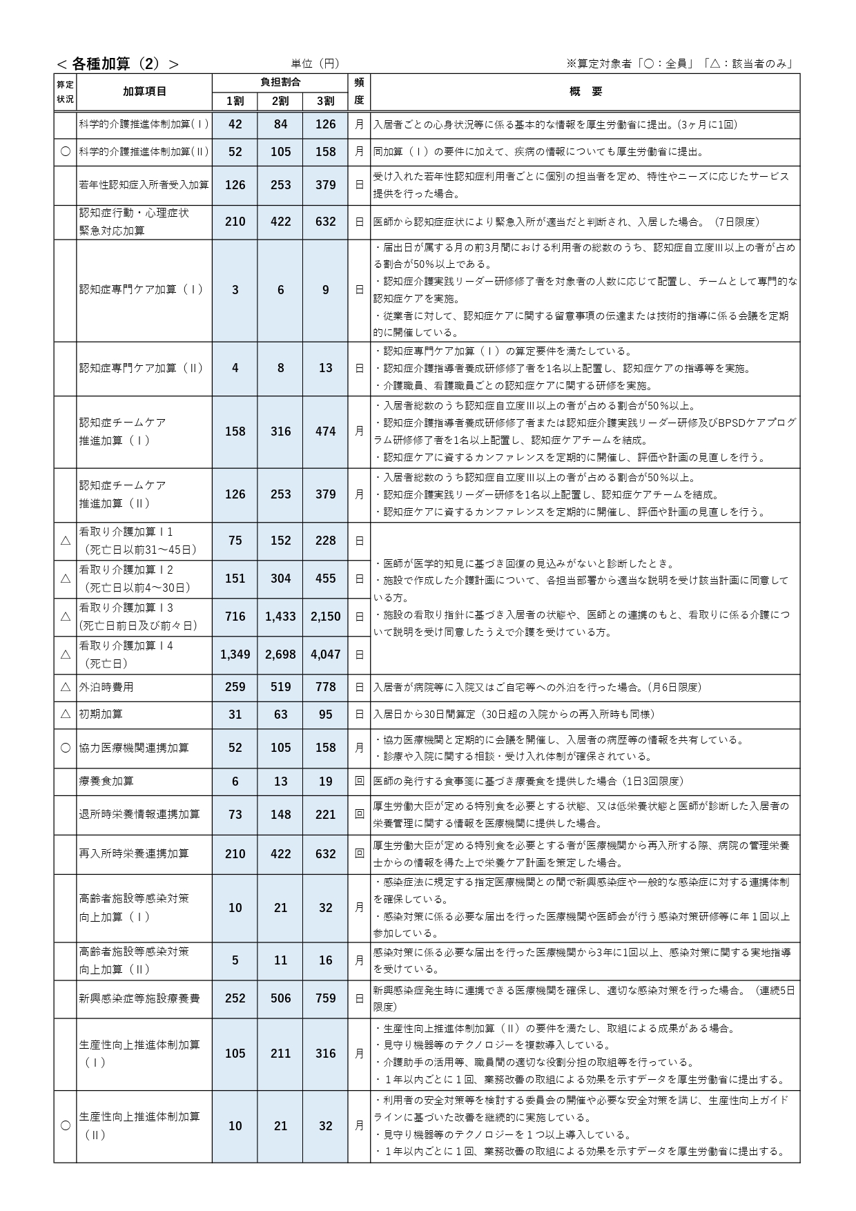 入居料金表【地域密着型介護老人福祉施設(ユニット型個室)】