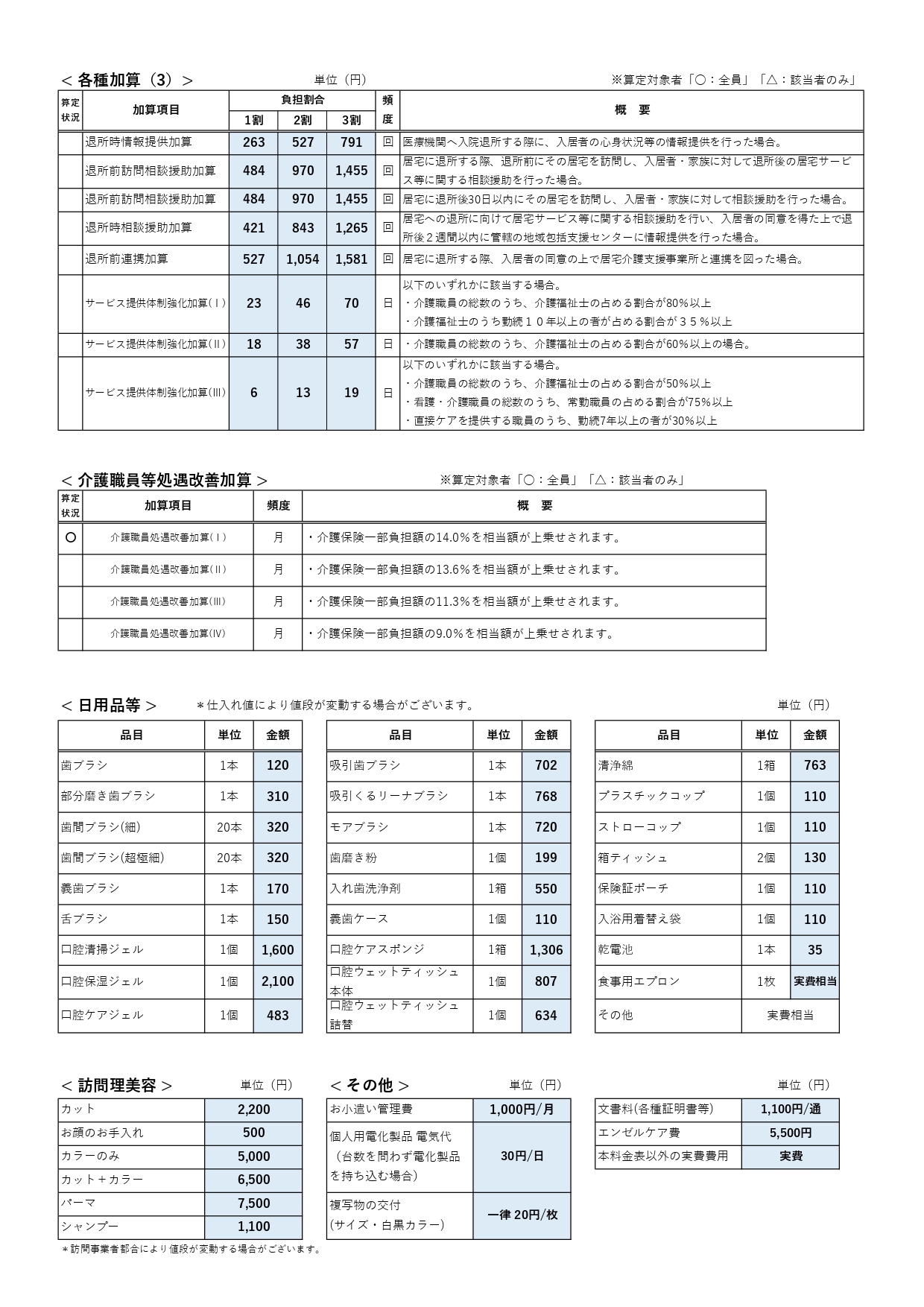 料金表《入居》