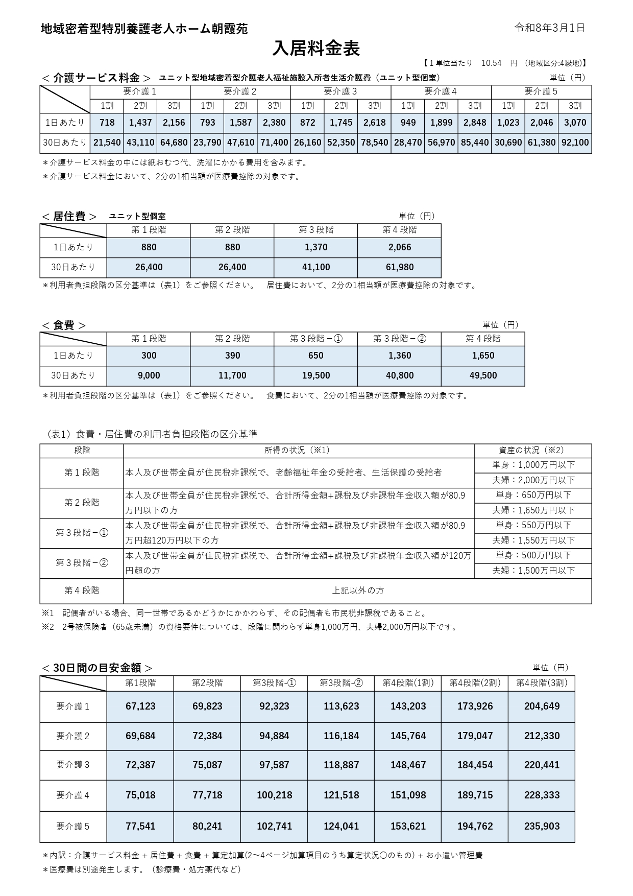 朝霞苑入居料金表